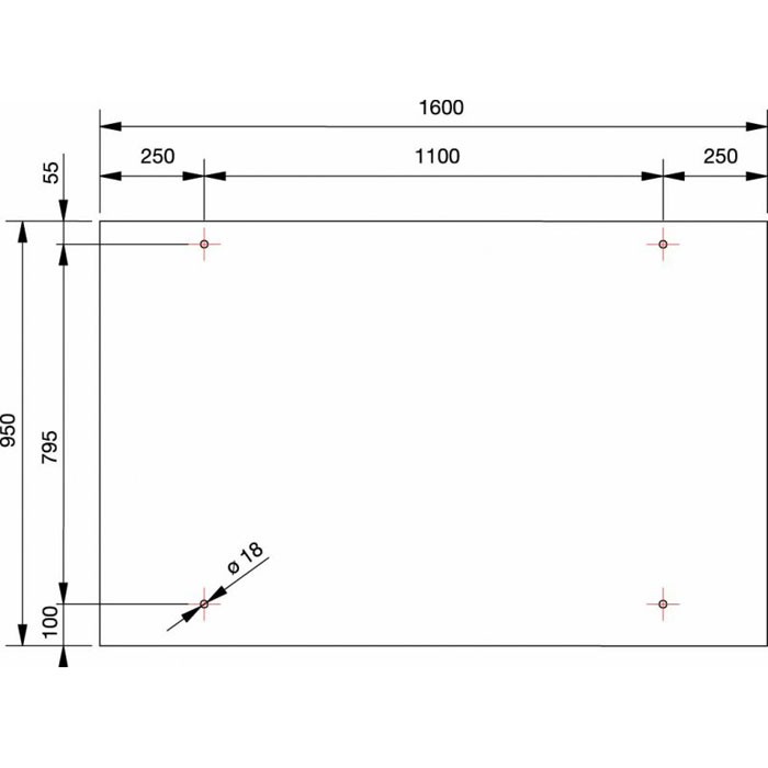De maximale afmeting met 2 draadstangen is standaard 950x1600mm.