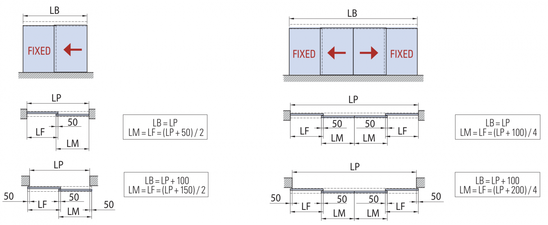 Soft-close schuifdeurset voor enkele deur (70kg) met vast zijlicht t.b.v. plafond en wand montage.