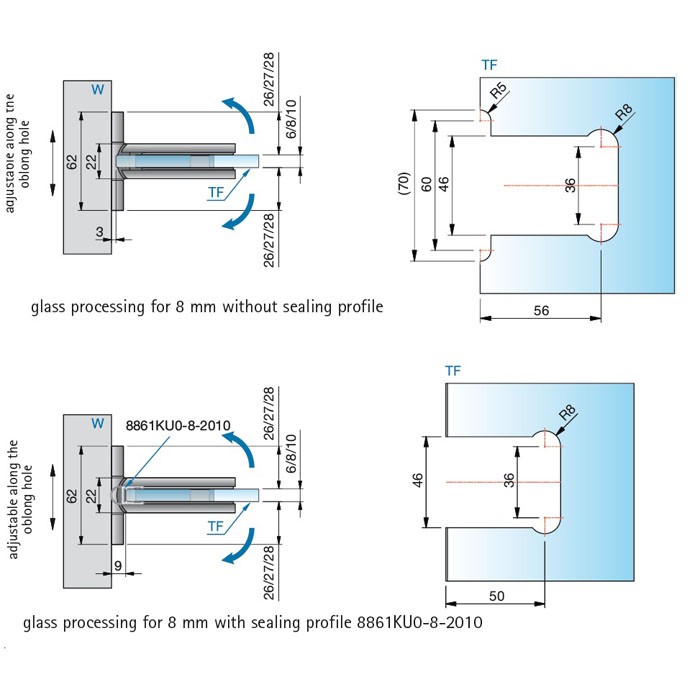 - Max. deur afmeting 6 & 8 mm: 1000 x 2000 mm