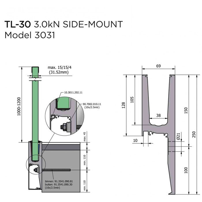Glasprofiel TL-3031 Side Mount 3,0kN