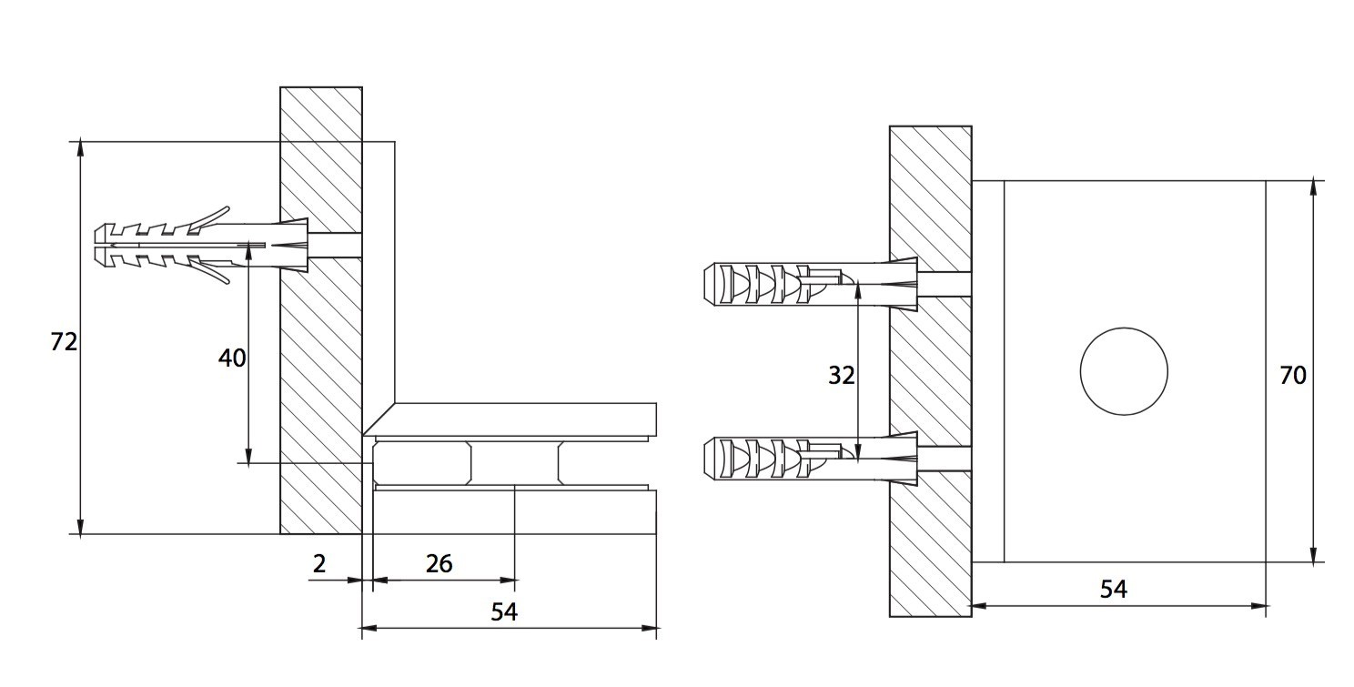 Moist glasklem glas-wand 90º.