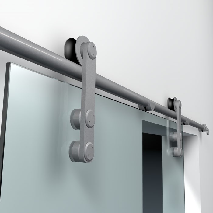 Minimalistisch RVS schuifdeurset voor enkele deur, wandbevestiging lengte 2000mm.