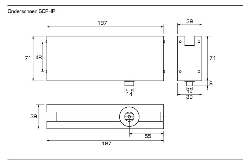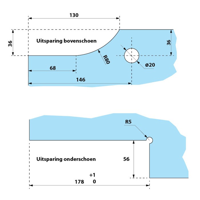 - Draaipunt: Afstand dag - hart draaipunt is 60mm
